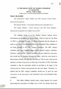 High court order:मध्य प्रदेश हाईकोर्ट का ओबीसी वर्ग के पक्ष मे एतिहासिक फैसला