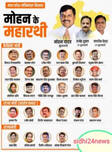 मध्यप्रदेश में डॉ. मोहन यादव सरकार का पहला मंत्रिमंडल विस्तार संपन्न हो गया।राज भवन में राज्यपाल मंगुभाई पटेल ने 18 कैबिनेट और 10 राज्यमंत्रियों को पद और गोेपनीता की शपथ दिलाई इस दौरान मुख्यमंत्री डॉ मोहन यादव मौजूद रहे।