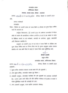 भोपाल- Mp में 22 जनवरी को ड्राय डे रहेगा। इस दिन मदिरा, भांग समेत सभी प्रकार के मादक पदार्थ की दुकानें बंद रहेगी। मुख्यमंत्री डॉ. मोहन यादव ने कहा कि 22 तारीख हम सबके के लिए एक अलग तारीख है। पूरा देश अयोध्या में रामलला की मूर्ति की प्राण प्रतिष्ठा से रोमांचित है। मप्र सरकार भी जनभावनाओं के साथ है। इसलिए हमने ये फैसला लिया है। सीएम की घोषणा के तत्काल बाद मप्र के वाणिज्यकर विभाग की प्रमुख सचिव दीपाली रस्तोगी ने इस संबंध में आदेश भी जारी कर दिए हैं।
