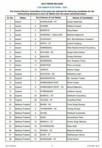 इस लिस्ट में 43 उम्मीदवारों में से दस जनरल, 13 ओबीसी, दस एससी, नौ एसटी और एक मुस्लिम उम्मीदवार हैं। पार्टी ने छिंदवाड़ा से कमलनाथ के बेटे नकुलनाथ को उतारा है। भाजपा से कांग्रेस में शामिल हुए राहुल कस्वां को चुरू लोकसभा सीट से टिकट दी है। इस लिस्ट में जोरहाट से गौरव गोगोई, सिल्चर से सुरज्या खान, जालोर से वैभव गहलोत का नाम शामिल है।