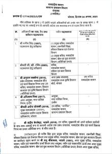 भारतीय प्रशासनिक सेवा अधिकारियों की नवीन पदस्थापना: सामान्य प्रशासन विभाग ने जारी किए आदेश