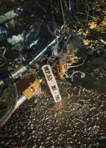 टक्कर इतनी भीषण थी कि बाइक के परखच्चे उड़ गए और तीनों युवक सड़क पर कई फीट दूर जा गिरे।