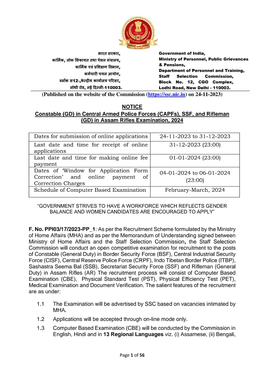 10 वी पास युवाओं के लिए रोजगार का सुनहरा अवसर आरक्षक जीडी के पदों पर निकली भर्ती….
