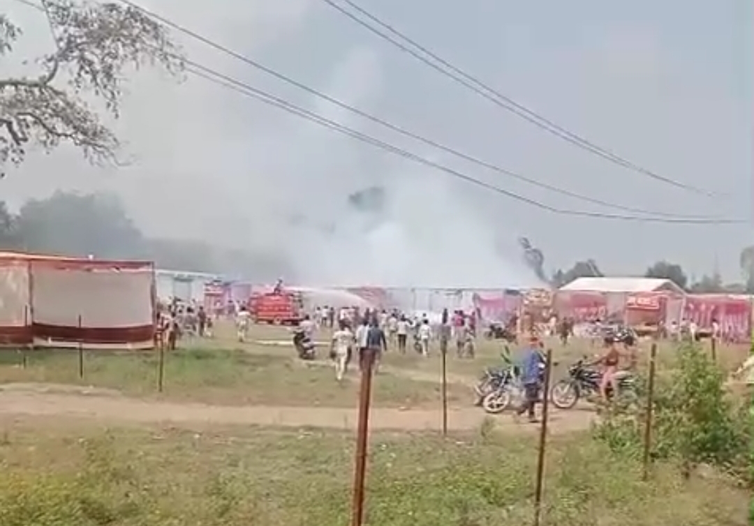 पटाखा बाजार में भीषण आग — दो दुकानें जलकर खाक, आठ को भारी नुकसान