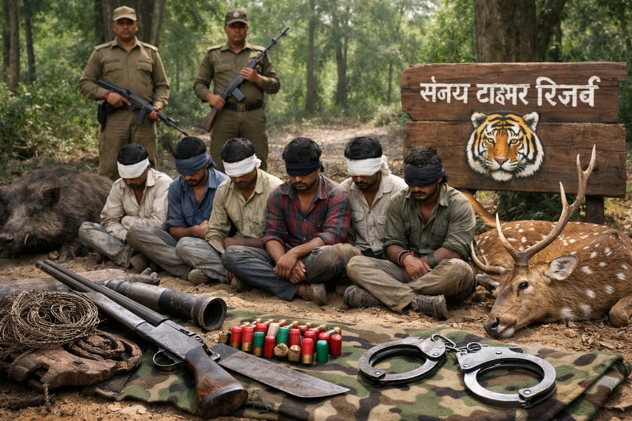 संजय टाइगर रिजर्व में वन विभाग की बड़ी कार्रवाई: जंगली सुअर और चितल के शिकार के आरोप में 6 शिकारी गिरफ्तार
