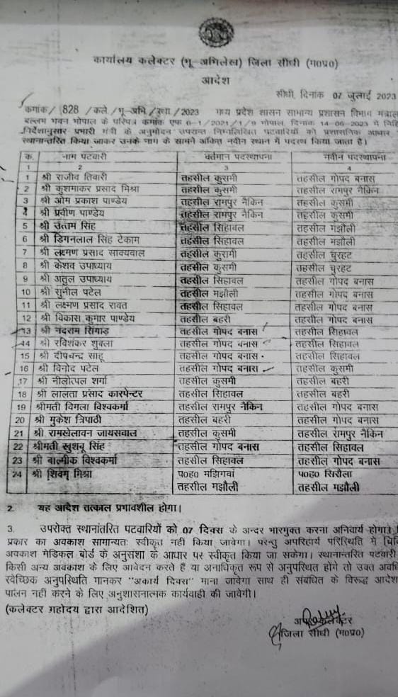 Sidhi news:सरकारी आदेश पर भारी पटवारी,स्थानांतरण के छ:माह बाद भी नही हुए भारमुक्त