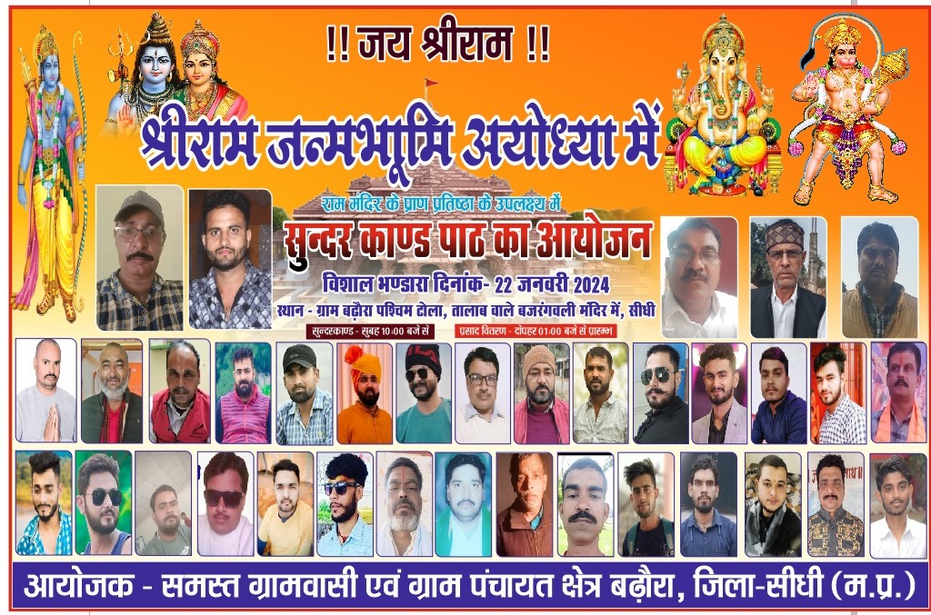 Sidhi news;जिले में उत्सव के रूप में मनाया गया भगवान रामलला का प्राण प्रतिष्ठा समारोह,श्री रामजानकी मंदिर में हुआ मुख्य कार्यक्रम…