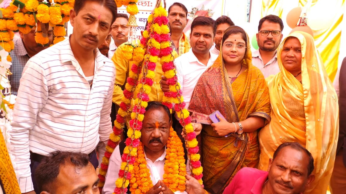 फलों से तौले गए धौहनी विधायक कुंवर सिंह टेकाम
