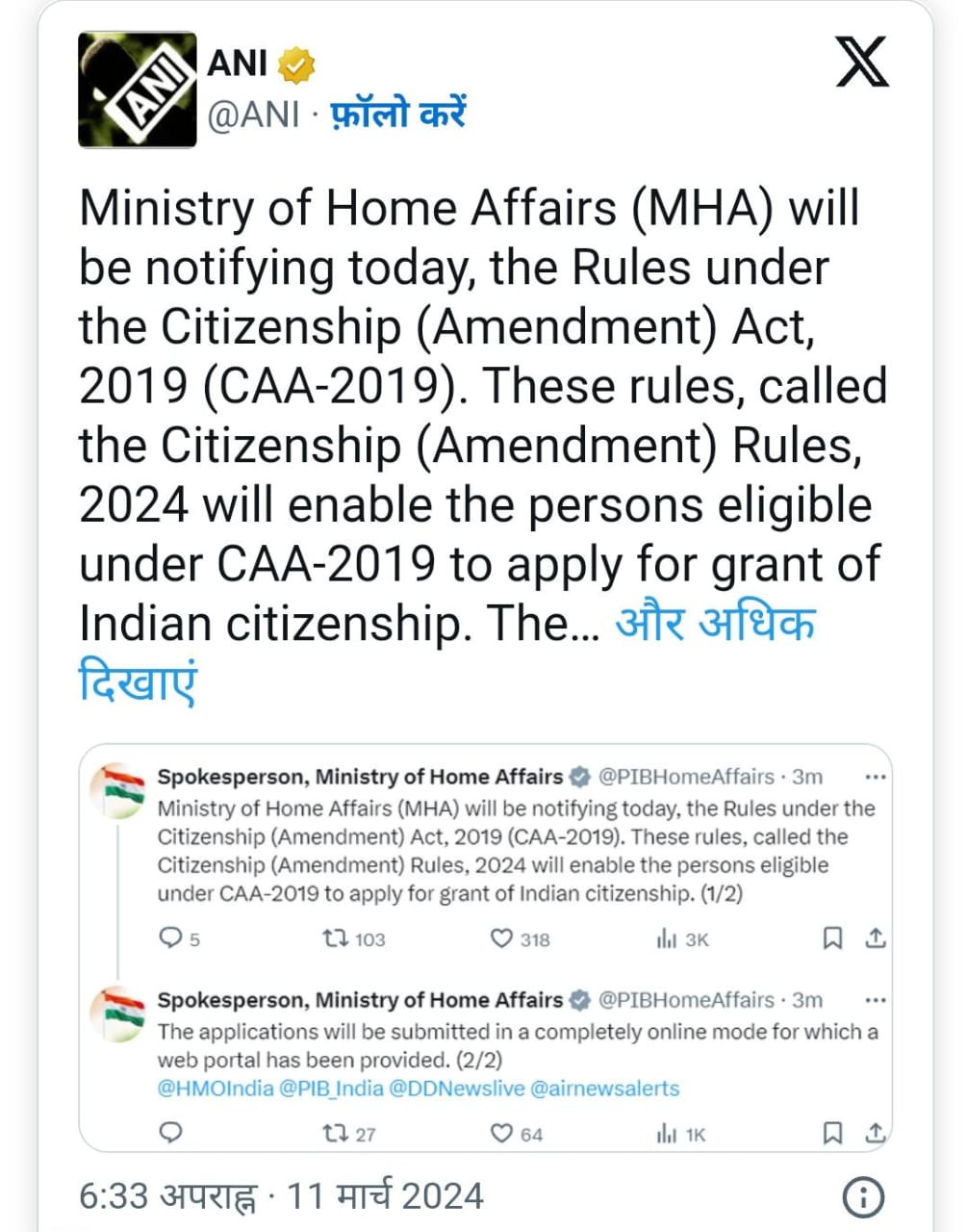 देश में CAA लागू, CM ने बताया -एक और ऐतिहासिक निर्णय