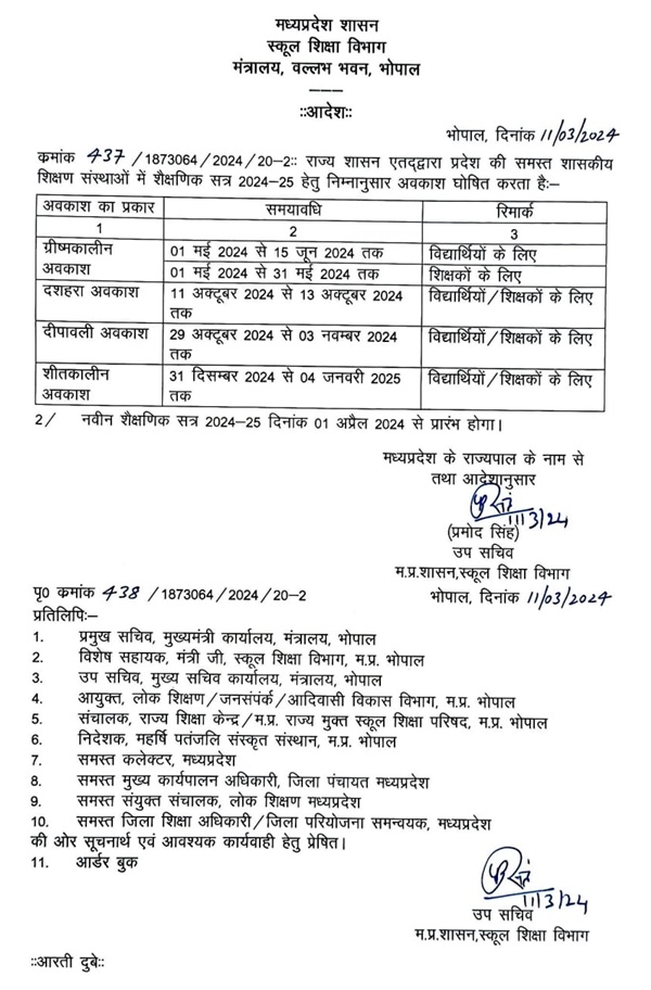 एमपी में एक मई से 15 जून तक स्कूली विद्यार्थियों के लिए रहेगी गर्मी की छुट्टियां