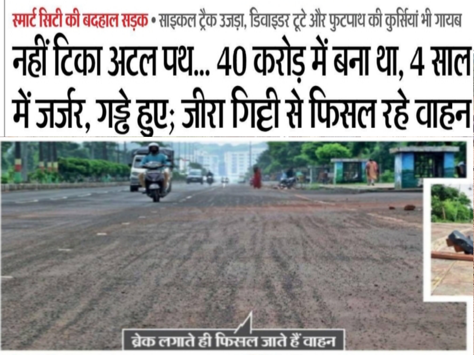 Sidhi24news; नहीं टिका अटल पथ… 40 करोड़ में बना था, 4 साल में जर्जर, गड्डे हुए; जीरा गिट्टी से फिसल रहे वाहन