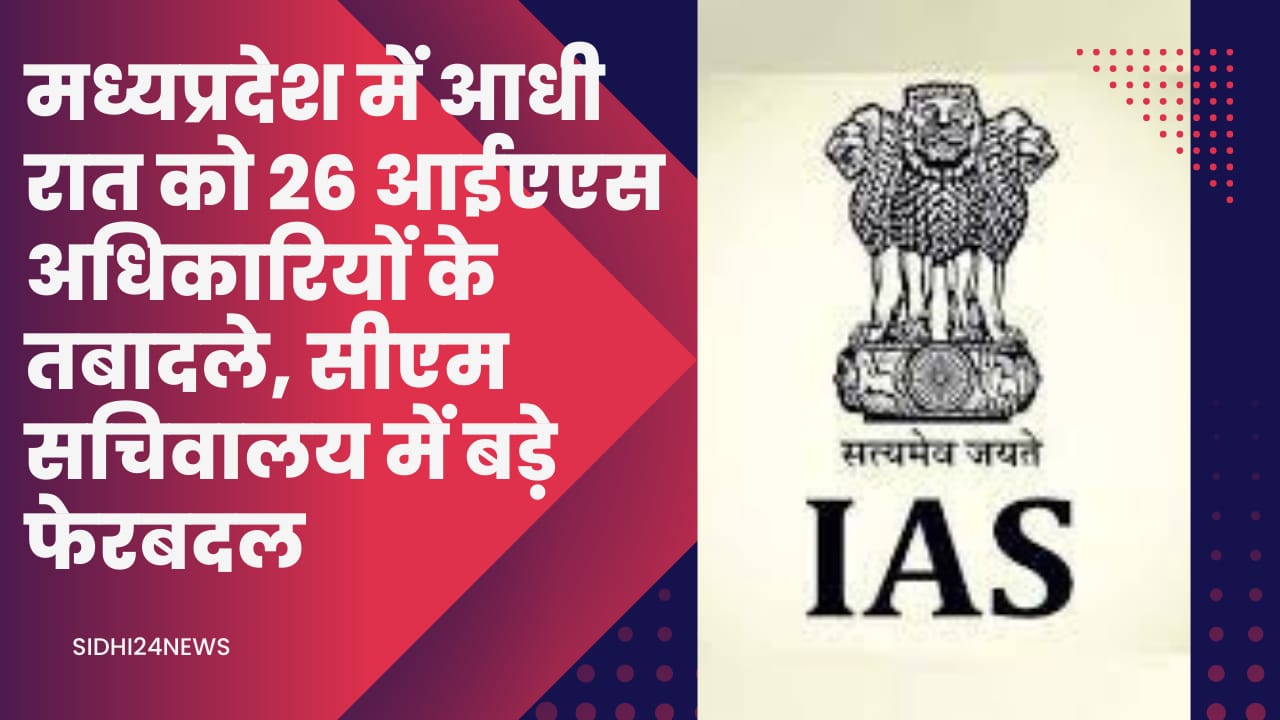 Ias transfar:मध्यप्रदेश में आधी रात को 26 आईएएस अधिकारियों के तबादले, सीएम सचिवालय में बड़े फेरबदल