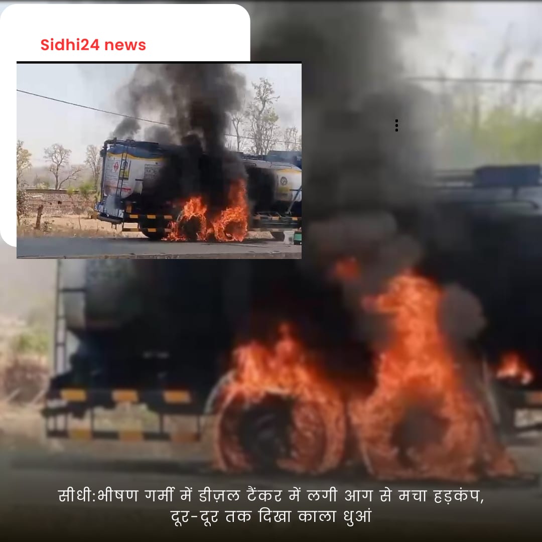 सीधी:भीषण गर्मी में डीज़ल टैंकर में लगी आग से मचा हड़कंप, दूर-दूर तक दिखा काला धुआं