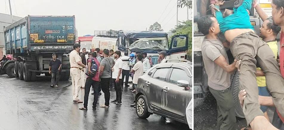 जयंत में डीजल टैंकर और ट्रेलर की भीषण टक्कर, ट्रेलर चालक गंभीर – डेढ़ घंटे तक जाम